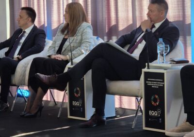U svom izlaganju, dr. Vuković je govorio o ulozi privatnog sektora u razvoju inovacijskog ekosistema i mogućnostima za ubrzanje zelene i digitalne tranzicije bh. kompanija. Istakao je važnost jačanja saradnje između Komore, univerziteta i inovacijskih centara, s ciljem razvoja novih industrijskih rješenja i stvaranja inovacijske ekonomije izvoza, u kojoj ideje prerastaju u konkurentne proizvode i usluge na međunarodnom tržištu.