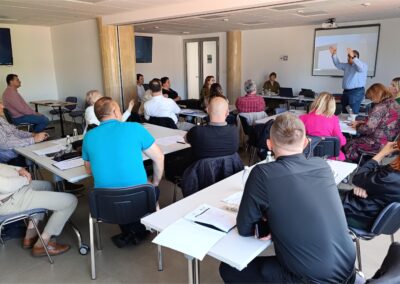 Program obuke obuhvatio je prezentaciju zakonodavstva i provedbenih aktivnosti u Bosni i Hercegovini i regionu, prikaz praktičnih primjera inspekcijskog nadzora, grupni rad na izradi kontrolne liste za KGH instalacije, kao i obilaske instalacija toplotnih pumpi uz terensku praktičnu obuku.