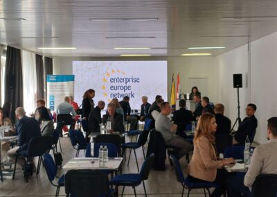 Međunarodni poslovni susreti na sajmu u Mostaru su jedna od aktivnosti koje je  Vanjskotrgovinska/Spoljnotrgovinska komora BiH realizovala u okviru projekta Evropske preduzetničke mreže 2022-2025, a kojeg sufinansira Evropska komisija u okviru SMP-COSME programa.