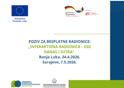 Poziv za besplatne stručne radionice „Interaktivna radionica– ESG danas i sutra“ u Sarajevu i Banjoj Luci