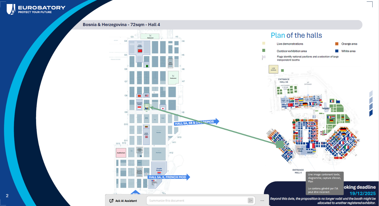 Vanjskotrgovinska/Spoljnotrgovinska komora Bosne i Hercegovine objavljuje Poziv za dostavljanje ponuda za izgradnju, opremanje, transport, montažu i demontažu štanda za bh. izlagače – Sajam Eurosatory Pariz (Francuska).