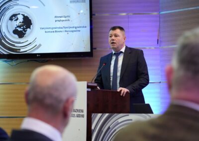 “Tokom prošle godine je skoro 1000 naših kompanija učestvovalo u posjetama sajmovima, B2B susretima, konferencijama i edukacijama koje smo organizirali. Struktura razmjene ostaje stabilna, metalska industrija zadržava najveće učešće, dok drvna industrija ostvaruje suficit i daje značajan doprinos vanjskotrgovinskom balansu. Posebno je važno istaći snažnu povezanost sa tržištima Evropske unije i CEFTA regiona, gdje su bh. kompanije integrisane u regionalne i evropske lance vrijednosti. Rast izvoza na pojedinim tržištima, uz istovremenu potrebu daljnje diverzifikacije i jačanja konkurentnosti, ukazuje na potencijal domaće privrede da u narednom periodu dodatno unaprijedi svoju poziciju na međunarodnom tržištu”, rekao je predsjednik Egrlić.