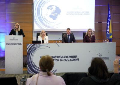 Ovo je istaknuto na konferenciji za novinare u Sarajevu, na kojoj su predsjednik Vanjskotrgovinska/Spoljnotrgovinska komora Bosne i Hercegovine Ahmet Egrlić i predstavnice Sektora za makroekonomski sistem, Belma Alihodžić i Amila Močević, prezentirali osnovne pokazatelje vanjskotrgovinske razmjene naše zemlje sa svijetom u 2025. godini. Podaci o vanjskotrgovinskoj razmjeni naše zemlje sa svijetom također su prezentirani i predstavnicima diplomatskog kora u BiH, bh. institucija i kompanija.