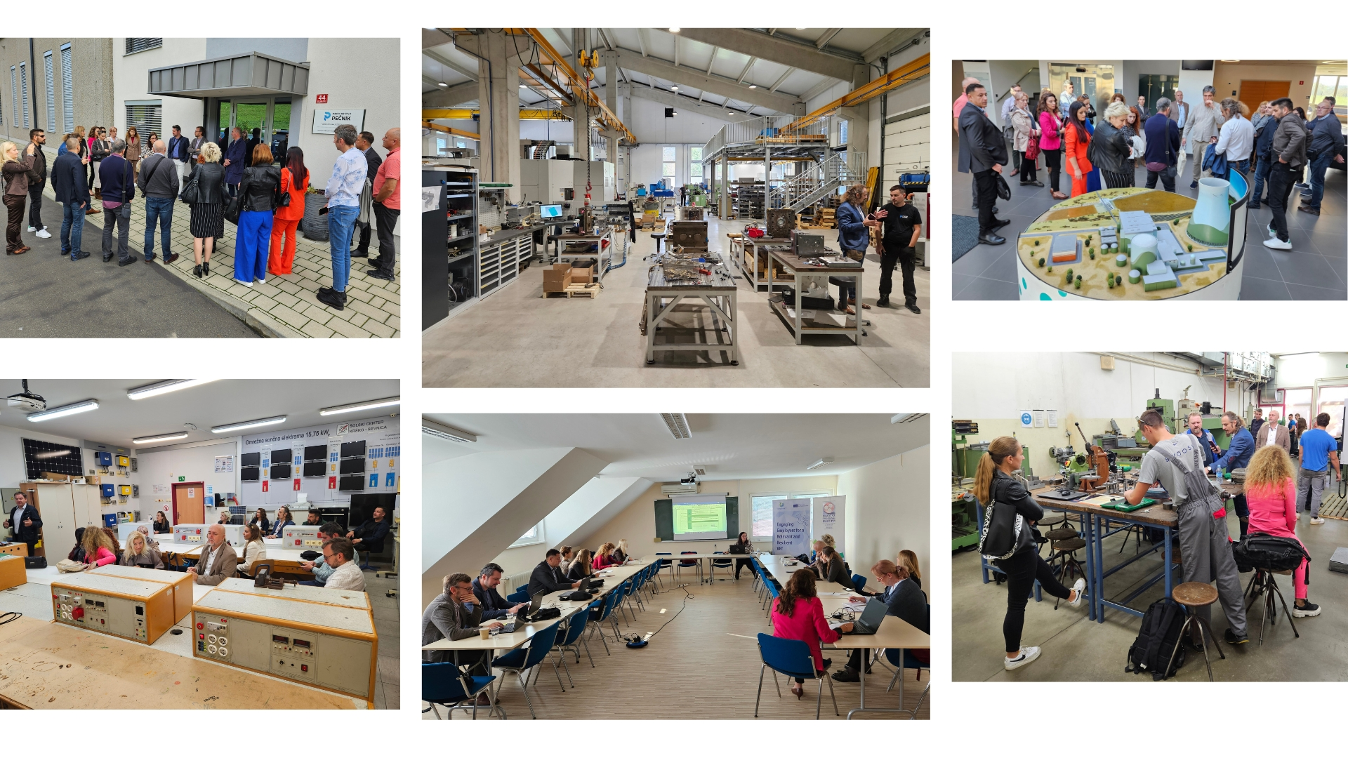 U okviru studijske posjete upriličena je posjeta kompaniji Orodjarstvo Pečnik, koja je specijalizirana za dizajn i proizvodnju svih vrsta alata za brizganje plastike. Kompanija nudi usluge glodanja, brušenja, tokarenja, žične erozije, potopne erozije, laserskog zavarivanja i mjerenja. Vlasnik kompanije je aktivni učesnik obrazovanja na radnom mjestu, koje ima verificirano učilišno mjesto i educira učenike. Također, učesnici su posjetili Svet energije, interaktivni multimedijski centar koji je 2011. godine osnovala kompanija GEN energija d.o.o. Centar pruža sveobuhvatne i stručno utemeljene informacije o važnosti energije i njene upotrebe u svakodnevnom životu, tehnologijama proizvodnje električne energije, te o njenim privrednim, društvenim i okolišnim aspektima. Potiče razumijevanje uloge obnovljivih izvora energije, učinkovite upotrebe energije i održive proizvodnje električne energije pri odgovornom odlučivanju o našoj energetskoj budućnosti. Kompanija stavlja veliki naglasak na obrazovanje i obrazovne sadržaje. Centar, u saradnji s Fakultetom za energetiku i Institutom za energetiku, organizira brojna osposobljavanja i edukacije. Također provodi praksu na radnom mjestu za učenike srednjih škola i studente fakulteta.