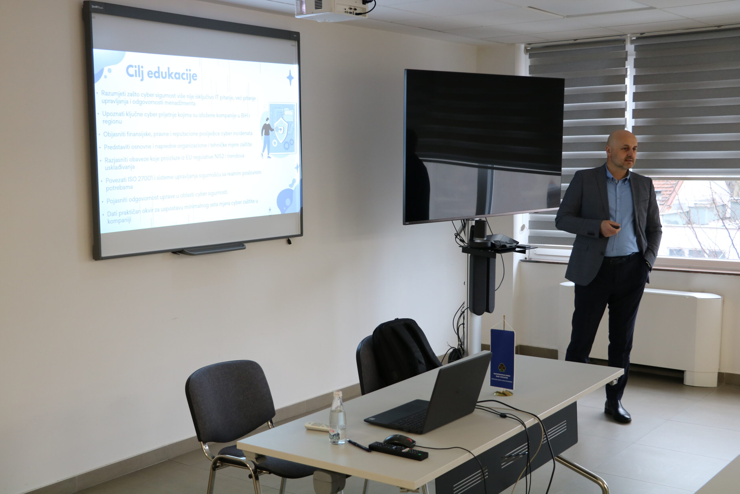 Tokom edukacije, učesnici su imali priliku saznati zašto cyber sigurnost više nije isključivo IT pitanje, već pitanje upravljanja i odgovornosti menadžmenta. Također su se upoznali s ključnim cyber prijetnjama kojima su izložene kompanije, kao i s finansijskim, pravnim i reputacionim posljedicama cyber incidenata te organizacionim i tehničkim mjerama zaštite.